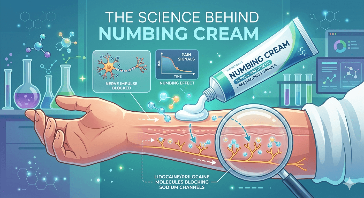 Numbing creams contain topical anesthetics like lidocaine, benzocaine, or tetracaine. These chemicals target nerve endings in your skin's outer layers by blocking sodium channels, which stops pain signals from reaching your brain. Some formulas add epinephrine to constrict blood vessels, prolonging the effect while reducing bleeding.