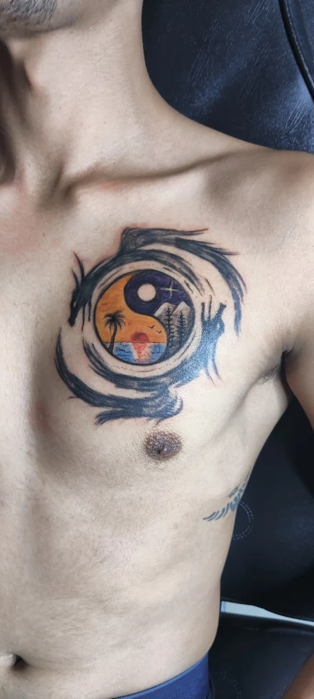 Asian Traditional Tattoo services in Bangalore at Fred’s Tattoo Studio emphasize clean outlines, rich shading, and carefully layered detail to bring each character and symbol to life. The artist pays attention to contrast, color harmony, and composition, so the tattoo feels like a complete scene rather than separate parts.